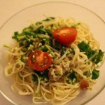 生ハム・枝豆・ルッコラ・トマトの冷製パスタ