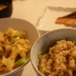 冷蔵庫の材料を見てみてマイタケとキャベツがあったので、きのこご飯とツナキャベツをつくってみた。 きのこご飯はネットのレシピを参考に。 きのこ類であればなんでもいいんだけど、ポイントはオリーブオイルを入れること。 こうすることで、コクが出てときのこのうまみがひきたちます。 ツナキャベツは、はちみつ、しょうゆ、ラー油で味付け。 ラー油は沖縄のペンギン食堂を使用。 ゆでたキャベツとツナをあえれば完成。 … 続きを読む