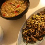 これは、どうしても今日中に春菊を使い切ってしまいたかったので、ネットからレシピを引っ張り出したもの。 ペペロンチーノということなので、オリーブオイル、にんにく、鷹の爪、塩が味の基本です。 それに、春菊、納豆という和の食材が合体するとどうなるか、という料理ですが、結果は春菊を使い切ることを目的としていたため、春菊が多すぎてバランスが悪いうえに、火も通しすぎた感じ。 ペペロンチーノとの相性は悪くないと … 続きを読む
