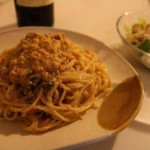今回はまったくのオリジナルメニュー、卯の花クリームスパゲティー。 先日おからを買ってきて、定番の卯の花を作ったが、大量に作ったので、それを使ったアレンジメニュー。 残りものをアレンジして適当に焼きそばやスパゲティーにするのが好きなんだけど、今回はスパゲティーにしてみた。 卯の花を牛乳でのばして、コンソメなどで味を調える。 生クリームでコクを出して、ゆでたスパゲティーとあえる。 また作る機会があるか … 続きを読む