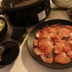 ぶりの季節に入り、店頭には天然ぶりが数多く並んでいる。 今年は、値段もお手頃で脂ののりもよさそうです。 ということで、今日は刺身用のサクが安かったので、買ってきてぶりしゃぶにしてみた。 腹に近い部分だと脂が強すぎるような気がしたので、そこははずして買ったんだけど、それでも相当脂がのっています。 しゃぶしゃぶ用に、なるべく薄く切り身にして並べて、適当な野菜とともにいただきます。 タレは、またポン酢の … 続きを読む