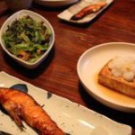 今日は焼酎を飲みたくて、和食おつまみ系を作ってみた。 ・鮭粕漬けの焼き物 ・豆腐ステーキゆずおろしがけ ・小松菜と焼きしいたけのごまポンズ和え ・大根とわかめの味噌汁 どれも結構いい感じでした。 焼酎にも合うし。 ちなみに今日の焼酎は、吉兆宝山でした。