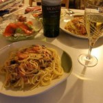 6月の3と4は妻と自分の誕生日。 今日は妻の誕生日ということで、ちょっとパーティらしく。 メニューは、 生ハムのサラダ 生ハムとアスパラのクリームパスタ(リングイネ) とり胸肉のバルサミコソースのソテー それから適当に数種類のチーズ ワインは、Napa Angelというカリフォルニア赤ワイン(カベルネ・ソ-ヴィニヨン) ワインはうまかったし、料理との相性もよかったので自己満足度高し。 プレゼントは … 続きを読む