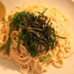 スーパーで明太子が安かったので、世間一般の定番メニューであろう「明太子スパ」にしてみた。 今日のレシピは明太子に熱を通さないようにする生くりーむ・バターを使ったトローっとした感じのもの。しつこくないように、大葉を多くして、のりもたっぷり目にしています。 そうはいっても個人的にはちょっとこってりだった。 まだ明太子がかなりあるので、どんなもの作ろうか? 結局ご飯にそのままストレートに明太子をのせて食 … 続きを読む