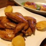 お手軽なおつまみ系メニューを作ろうということで、図書館で2冊借りてきて、作ってみたのが今日のメシ。 一品目は、五香粉のタレに漬け込んだ手羽先をじっくり焼くもの。途中でハケで塗り足して照りとコクを加えます。 もう一品は、油揚げにしそ納豆を詰めて、マヨネーズをのせて焼いたもの。 どっちもやっぱりおつまみとしてはいい感じでした。 特に手羽先はおつまみには最高っすね。